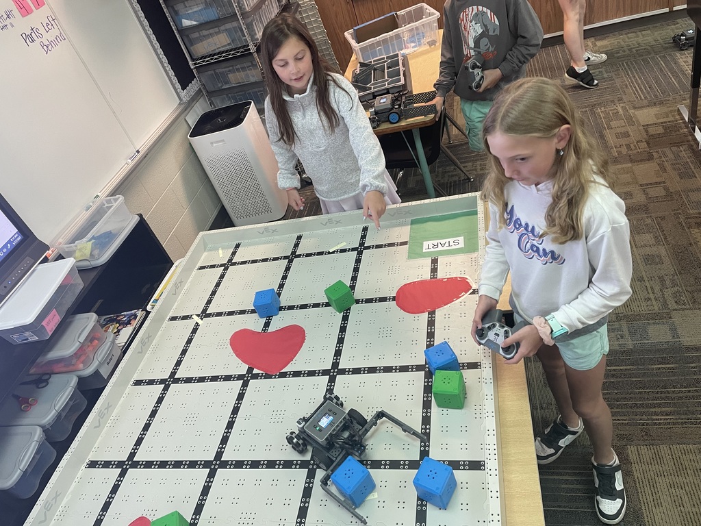 Fifth graders in Mrs. Henning's "EDGE" classes have designed, built, tested, revised, and raced their robots in an interactive obstacle challenge! Each class also created a Signature Class Track including students managing and officiating the time trials, rules, and collecting and presenting stats for all the races on the Class Tracks. Students persevered through a variety of set-backs and mistakes, leading them to work together, coach each other as drivers, and identify design problems to resolve so they could keep making big improvements on the tracks.